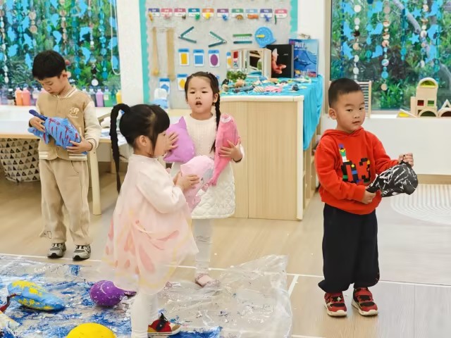 今天的中文课特别热闹,我们请来了两位职能部门的老师,一起看孩子们展示Unit 3 PBL的阶段性成果。孩子们有的表演角色,有的举着自己亲手做的papermache海洋动物模型或黏土作品,还配合小实验,向两位老师、班上的其他老师和同学们分享这个单元学到的本领。他们讲了大海是怎么形成的、海水为什么是咸咸的,还解释了“大海流血了”(赤潮)、“大海出现蓝光”(荧光沙滩)——孩子们说,这些都是因为大海生病了,被污染了。他们还用稚嫩的语言,聊起各种各样的海洋生物:会伪装的比目鱼和拟态章鱼,威风的螳螂虾和招潮蟹,美丽的海兔和海天使,危险的海蛇、栉水母和鸡心螺,还有温柔的海豚、鲸鲨、虎鲸,以及可可爱爱的海马、小丑鱼、海星……真是把整个单元的东西都搬出来了。说实话,看着他们这么投入地讲、演、做实验,真的能感受到这堂课的意义。孩子们从之前一点点学知识、观察和创作,到今天大大方方地把自己的理解讲给大家听,这个从“学进去”到“讲出来”的过程,特别珍贵。在他们清澈的眼睛里,海洋不只是温柔的、危险的或者威风的,而是一幅特别美好、特别值得好好珍惜的画卷。也正因为孩子们眼里的海洋这么生动、这么有趣,他们才会自然而然地觉得:我们要去保护它。这一次PBL,不只是把不同学科的知识串在了一起,更重要的是,在一次次的观察、动手和表达中,孩子们心里悄悄种下了一颗爱护自然、守护海洋、对海洋感兴趣的种子。