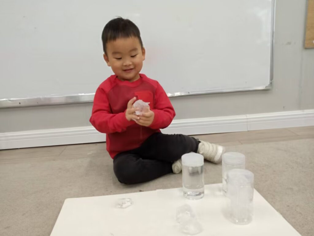 April 25 Daily Report Published: April 25, 2025 各位爸爸妈妈们中午好今天孩子们学习了冷和热,用冰块和温热水,让孩子用手感受冷热温度的不同,发展孩子们的触感,培养孩子们在生活中养成冷了热了我知道的习惯。通过操作把冰块放在热水里会融化成水,初步了解了融化的过程,知道了冰块融化后会变成水。实验结束后,孩子们对冷和热的物品进行了分类活动,进一步加强对冷和热的理解。 Daily Menu Moments Categorized in: LUC, Share Article: Share on Facebook Share on Twitter Share on Email Share on Whatsapp Copy Link