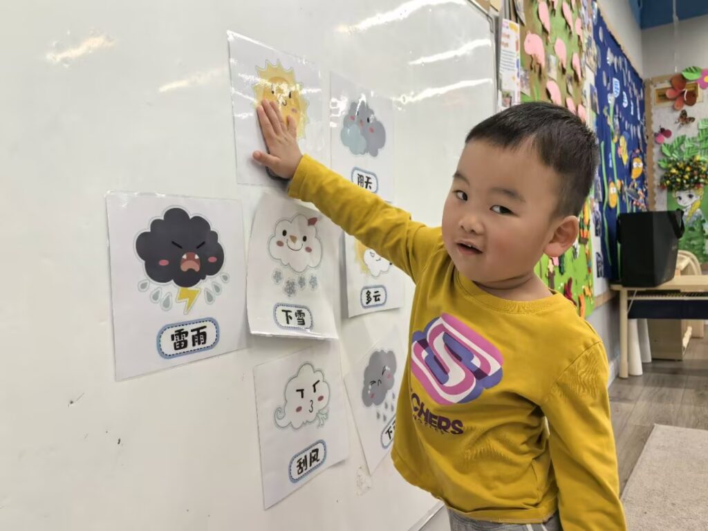 April 7 Daily Report Published: April 7, 2025 各位爸爸妈妈们中午好本周开始孩子开始了关于“天气”主题的学习,今天孩子们学习了儿歌《天气歌》,通过儿歌学习初步了解了晴天,阴天,下雨,下雪,多云,雷电等天气的特点,感知天气和人们生活的关系。孩子们还认识了各种天气的图标,孩子们根据自己的生活经验介绍生活中的天气场景,提高孩子们的观察力和语言表达能力,进一步增加对天气变化的认知。 Daily Menu Moments _cuva Categorized in: LUC, Share Article: Share on Facebook Share on Twitter Share on Email Share on Whatsapp Copy Link