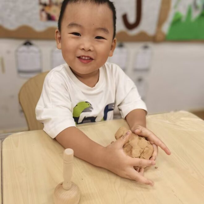 最让孩子们兴奋的”玩泥巴”环节到啦!通过这个欢乐的游戏,宝贝们收获满满: