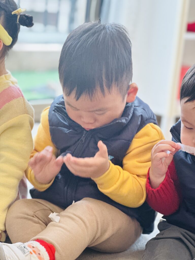 What an exciting day in class! The children had a blast learning the song “We Wish You a Merry Christmas.” They sang, danced, and had so much fun moving to the beat with the teacher’s guidance. Along the way, they picked up some festive words like “Christmas,” “Christmas tree,” “Santa,” “stocking,” “Christmas hat,” “bells,” “snowman,” “reindeer,” and “elf.” After that, they dove into a Christmas jigsaw puzzle, working together to complete it. To top it off, they had an amazing time playing a hammer game, where they used a small hammer to match the words and pictures with the teacher’s help! What a joyful, holiday-filled day! 🎄🎅🛷