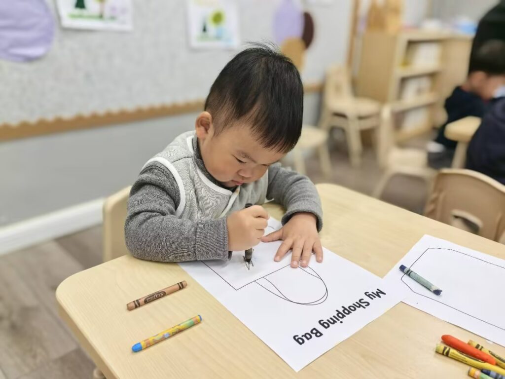 In our English class, we read the book “shopping trip”, and worked on making our very own shopping bag! We colored and designed our bags first, then we will turn them into real bags ready for our Friday shopping role play!
