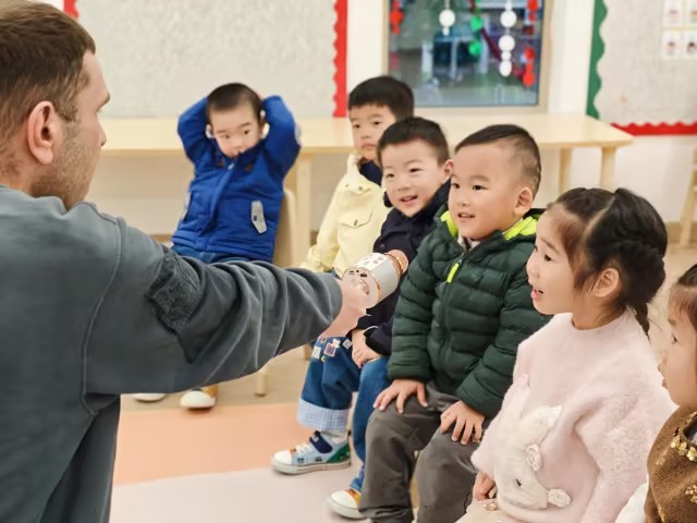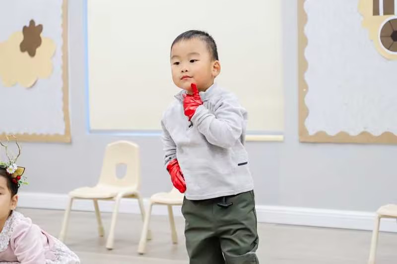 今天的中文课,我们学习了一个有趣的成语故事——《亡羊补牢》。课堂一开始,教室里已经布置好了小小的栅栏和几只小羊玩偶,孩子们一下子就被吸引住了。老师一边讲述故事,一边用手偶和教具演示:牧羊人发现羊少了,原来是因为羊圈破了洞;狼偷偷叼走了羊,让人又紧张又着急;最后牧羊人赶紧把羊圈修好,从此羊再也不丢了。孩子们听得十分入神,表情也跟着故事一会儿惊讶、一会儿松了口气。接着,最热闹的环节来了——角色扮演!几个孩子戴上可爱的羊头套,蹲在羊圈(用椅子围成)里;一个孩子扮演狼,在一旁虎视眈眈;还有孩子挥舞着小鞭子,当起了负责的“牧羊人”……大家一边演一边笑,在互动中加深对故事的理解。结合故事,孩子们认识了几个汉字:“多”“少”“只”“好”,并用它们组词、说句子。孩子们学得很投入,也玩得很开心。课上孩子们通过听、说、演、认多种方式,不仅记住了一个成语,还初步理解及时改正错误的重要性。真是充实又有意义的一堂中文课呀!