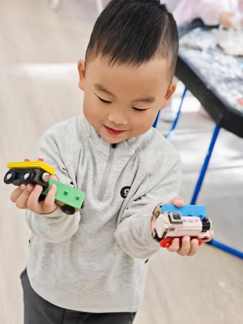 今天的英文数学课上,孩子们通过有趣的视频游戏与老师互动,学习了模式(Pattern)的概念——即事物按照一定规律重复或变化的排列方式。课堂上,孩子们首先在序列中观察和识别规律,并用雪花片动手操作,练习了AB、AABB、ABC等基本模式的延续与填充。随后,孩子们通过仔细观察老师摆出的模式序列,找出其中不符合规律的错误位置,并进行改正。活动以游戏化的方式引导孩子们主动观察、思考和动手,在轻松的氛围中掌握了识别规律、延续模式和纠错的能力。