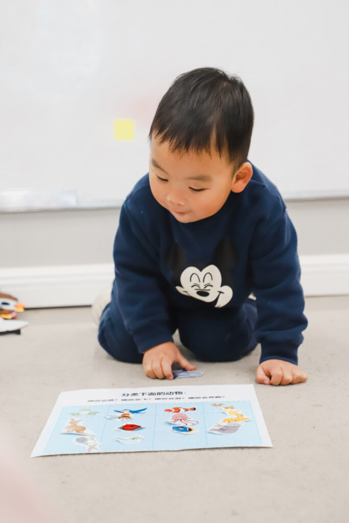 今天孩子们欣赏了儿歌《我爱我的小动物》感受小动物的可爱,能够分辨常见的动物的叫声,知道动物是人类的好朋友。通过对不同动物的理解,完成分类游戏,初步了解哪些动物是会飞的?哪些动物是会跑的?哪些动物是会跳的?哪些动物是会游的?
