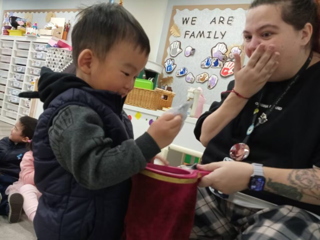 Today we had so much fun with our magic bag! We checked the bag, and it was empty, so we shouted “Abracadabra!” … suddenly, bugs appeared! 🤯 the children loved it, laughing and clapping their hands so loud. They also wanted to try and get inside the magic bag themselves and see what would happen