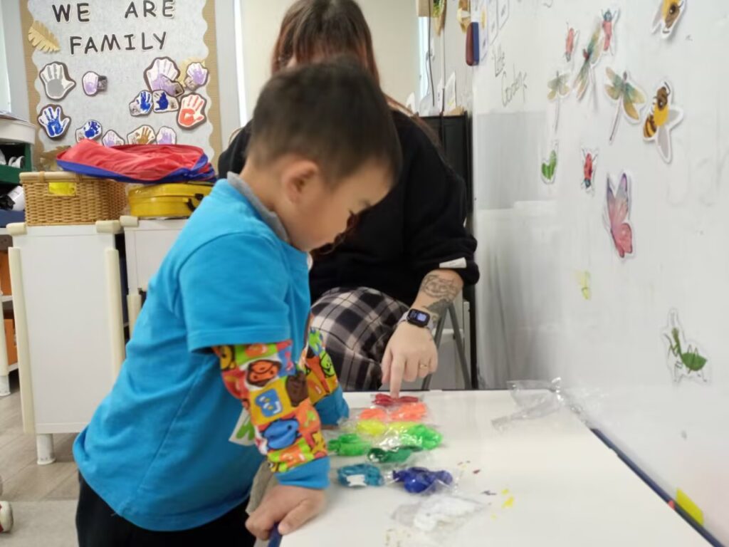 今天孩子们学习了多和少,先是通过动手操作游戏,比较两组物品的多和少。