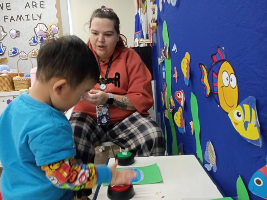 🐠 We made our very own fish tanks! We used stickers to place our fish, and discussed if they can go “inside” or “outside” of the water! Our little friends did great work!