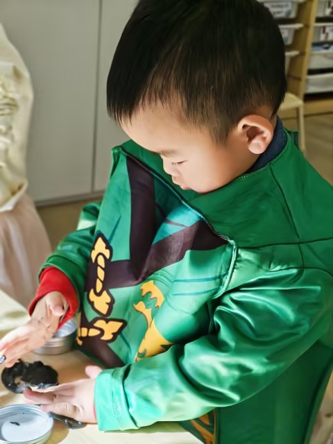 今天我们通过游戏化方式学习了15以内数字的相邻数与多一关系。孩子们首先将数字摆成长龙,直观地看到每个数字都有两个邻居;通过摆放雪花片,他们发现一个邻居比原数多1,另一个少1。在数轴跳跃游戏中,孩子们通过向大数字方向走一步来寻找多一的邻居(如从6走到7),在身体运动中强化理解。最后,孩子们用雪花片进行动手操作:先在左侧框内摆出相应数量,再在右侧摆出“多一”的数量。通过亲手摆放和专注点数,抽象的多一概念化作了手指可触的体验。整节课融合了数轴探索、实物操作与身体运动,让孩子在多感官体验中自然认识多一的概念,同时锻炼了点数和数量对应的能力,为后续数学学习奠定了生动的基础。