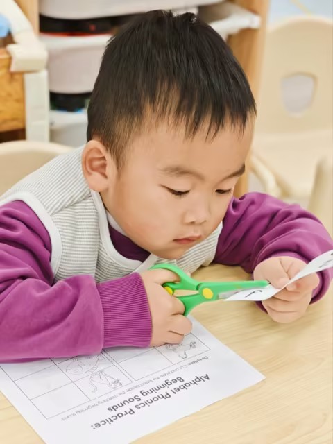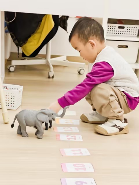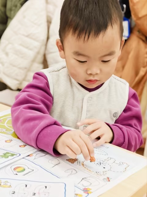 今天的中文数学课,我们围绕10以内的数字展开了一系列游戏和操作活动,帮助孩子们熟悉数字的顺序、理解数字的排列规律等。上课一开始,我们玩了接着数的游戏。老师从1开始数,随机停在某个数字,然后邀请小朋友接着往下数。热身活动既调动了孩子们的注意力,也让他们复习了数字的顺序。随后,我们进行了数字道路的游戏。老师把大型的设计成道路形状的数字卡片放在地上,但是顺序是打乱的。孩子们要扮演小司机,在上路之前,需要先把这些数字卡片按照从1到10的正确顺序排列好。大家一边动手调整顺序,一边互相提醒,在合作中逐步理清了数字的前后关系。在探索数字规律过程中,我们结合了孩子们喜欢的乐高积木。孩子们先根据地上随意摆放的数字卡片,用乐高块搭出对应数量的积木块,比如数字3就搭三块积木。孩子们一起把数字卡片和对应的乐高按顺序从1到10排好,并仔细观察。他们很快就发现:从1到10,每往后一个数字,乐高就会多一块,数字是慢慢变大的—这就是“升序”。反过来从10到1,每往后一个数字,乐高就会少一块,数字逐渐变小—这就是“降序”。通过这样动手搭建和排列,孩子们很直观地感受到了数字的变化规律,而不只是记住抽象的概念。最后,孩子们还完成了填数的纸上练习。有的小朋友用笔在空缺处写下数字,也有的小朋友选择了贴数字贴纸来完成。既给了孩子书写的练习机会,也照顾到不同孩子的发展节奏,让每个人都能用自己的方式参与到练习中。
