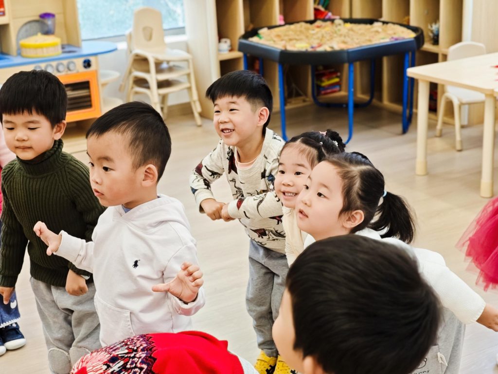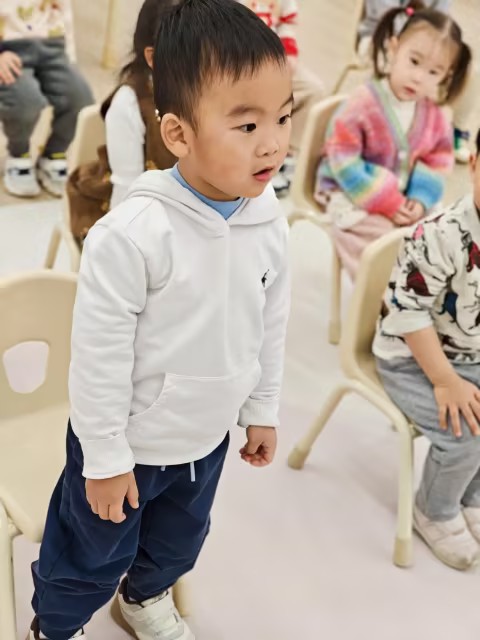 在今天的音乐活动中,孩子们化身为可爱的小鸡宝宝,跟随三拍子活泼的音乐节奏,一起完成了“小鸡觅食”情景律动的前半部分。活动中,孩子们模仿小鸡抖动翅膀、蹲下站起,在草地上认真寻找食物;每当找到一只虫子时,大家就开心地拍手,随着肚子越来越饱,孩子们拿起鼓铃在肚子上轻轻转圈,表现满足的样子,最后在欢快的旋律中举起鼓铃自由转圈,完整体验了从觅食到吃饱的快乐过程。孩子们在节奏中自然地运用身体动作表达情节,锻炼了节奏感和肢体协调性。