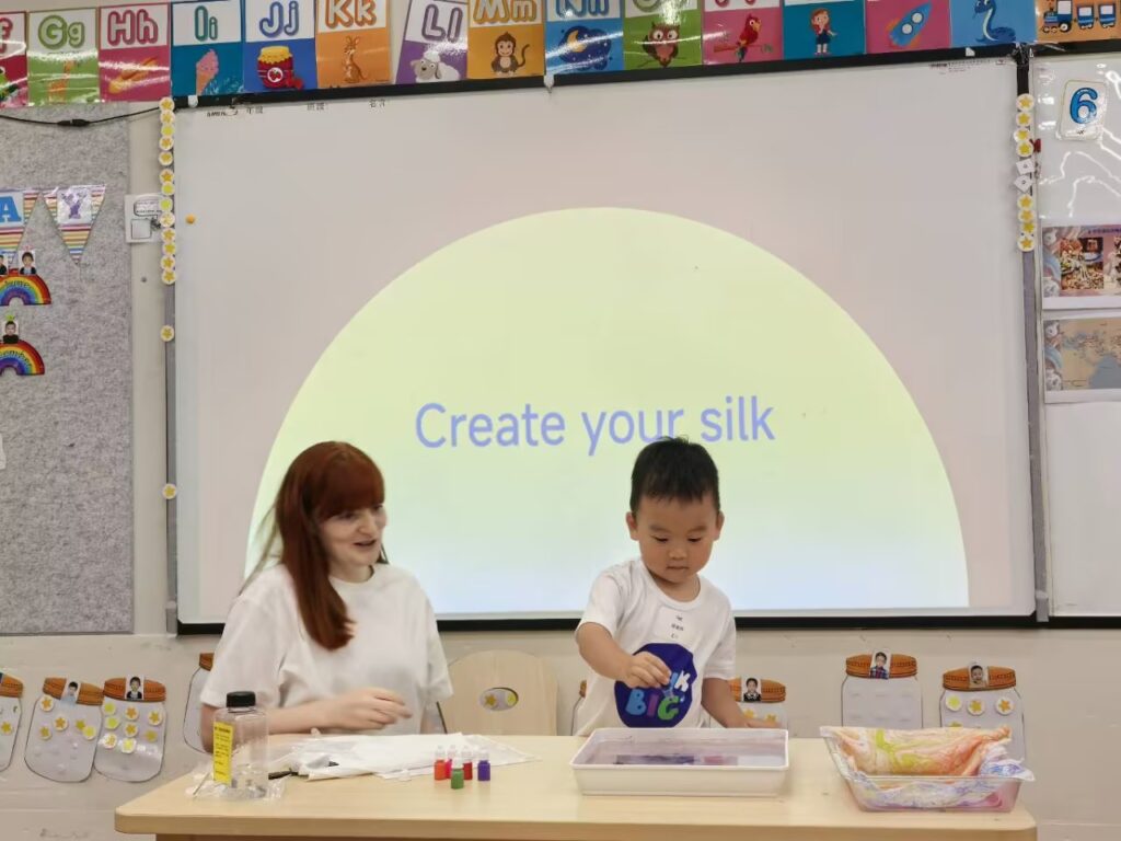 在故事里,孩子们仿佛穿越时空,跟随马可波罗的脚步,一起探索神秘的香料世界🌶,那散发着独特气息的香料,让孩子们忍不住凑近闻一闻;还一同观赏了精美绝伦的瓷器,那些细腻的纹理、绚丽的色彩,引得孩子们阵阵惊叹😲。就这样,孩子们在欢乐的氛围中,真切地感受着丝绸之路那深厚的文化底蕴。
