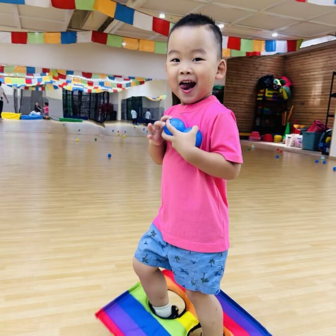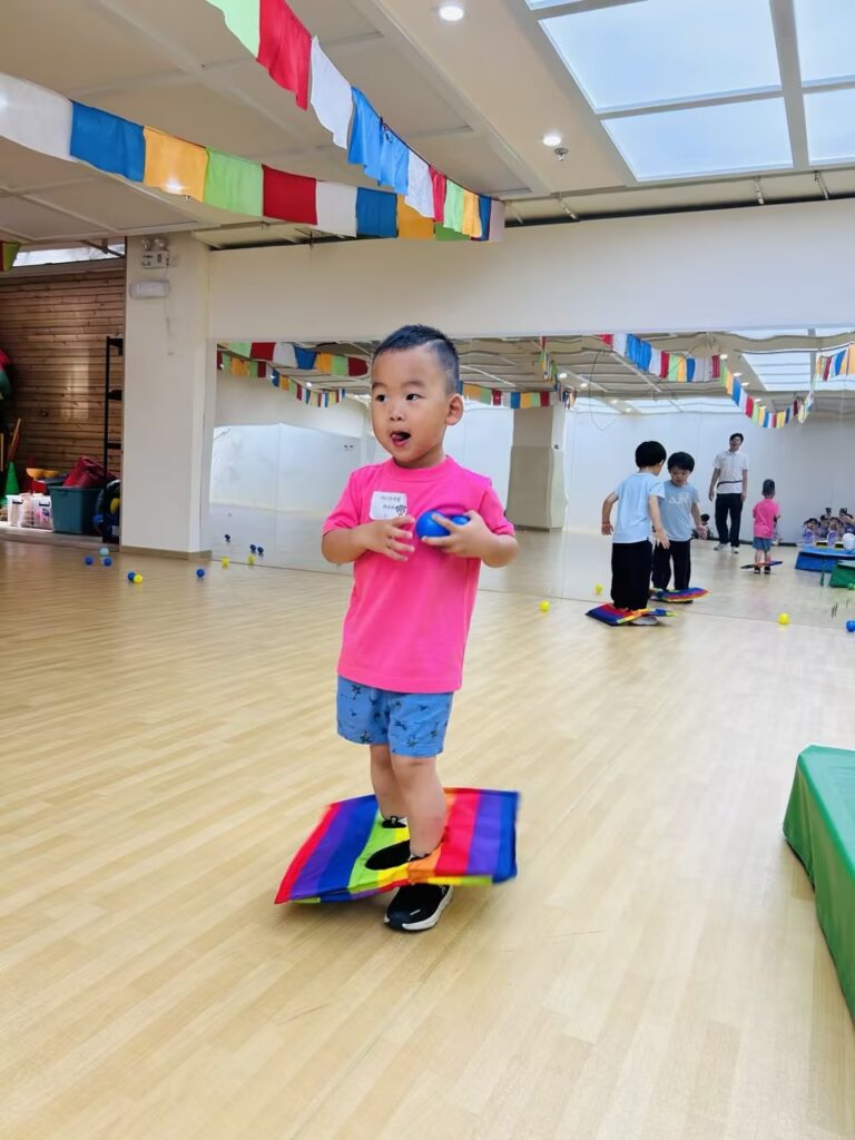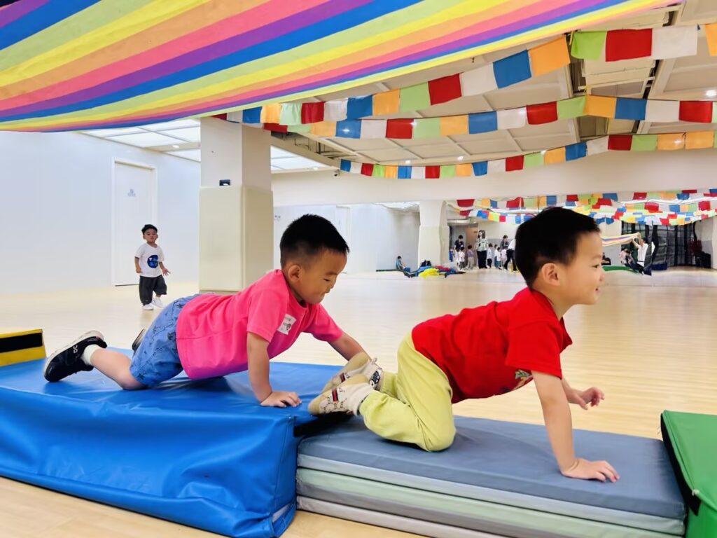今天的全明星体育运动课上,我们跟着Jerry老师来到了“彩虹森林”,和小猴一起钻彩虹隧道,通过正确的爬行姿势,学会攀爬软垫斜坡的方法,并理解“钻”“爬”“躲”等指令。另外,在彩虹伞环节中,我们体验了将彩虹伞按照指定的方向进行运动,提升孩子们的空间感知和身体控制能力。体育课是孩子们最喜欢的课程之一。