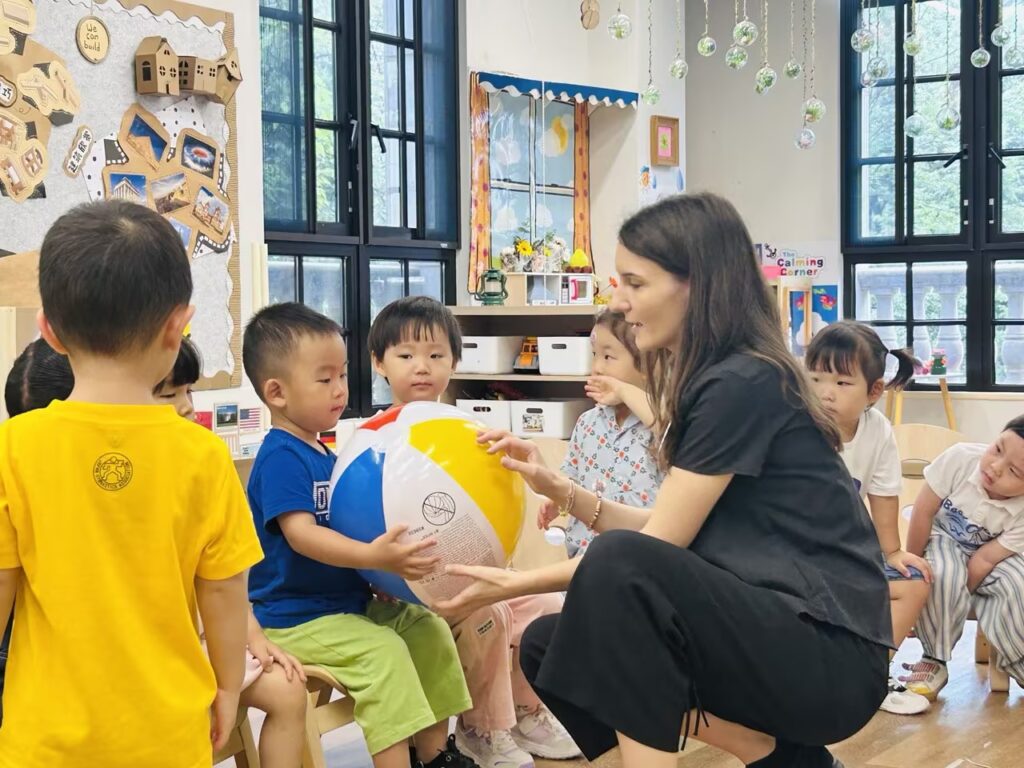 今天孩子们享用完美味点心后,便投入到了生动的英文课堂中。我们围绕球类运动展开学习,还通过趣味游戏加深了对知识的理解,课堂氛围超棒呢!