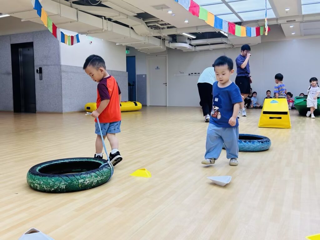 吃完点心后,我们先进行了英文晨圈活动,接着开展了生动有趣的英文课程。课程结束后,孩子们跟着Jerry老师走进“大森林”🌳,玩起了爬斜坡、翻滚小山、拖轮胎等趣味游戏。游戏中,每个孩子都兴致勃勃地参与,勇敢尝试各种玩法。这一系列活动不仅锻炼了孩子们下肢的灵活性,还提升了身体协调性,也让他们的空间感知能力得到了很好的发展。