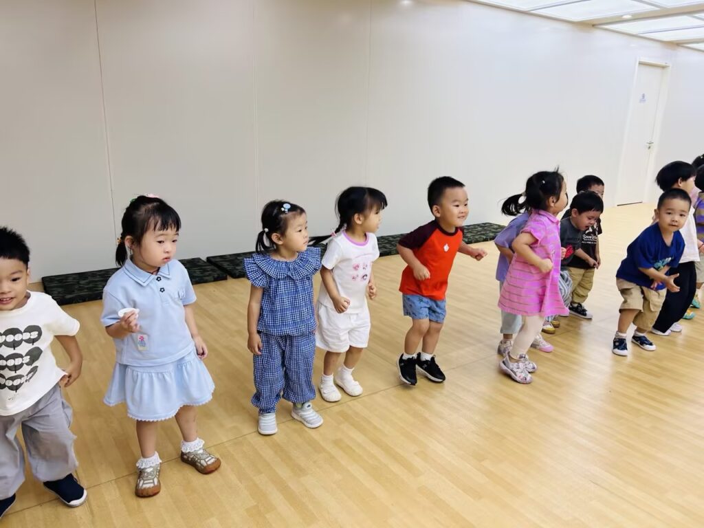 之后,孩子们踏上了欢乐的“音乐”之旅🎵:Happy老师先带着大家复习了上周的音乐游戏《我把自己藏起来》,随后便开始学习新的音乐律动《Happy Dance》。孩子们先跟着老师认真学习双脚跳、拍手👏、快跑、模仿芭蕾等动作,学会后带上腕铃,分组和集体轮流表演。伴随着欢快的音乐🎶,孩子们尽情展现自我,享受着音乐带来的快乐~