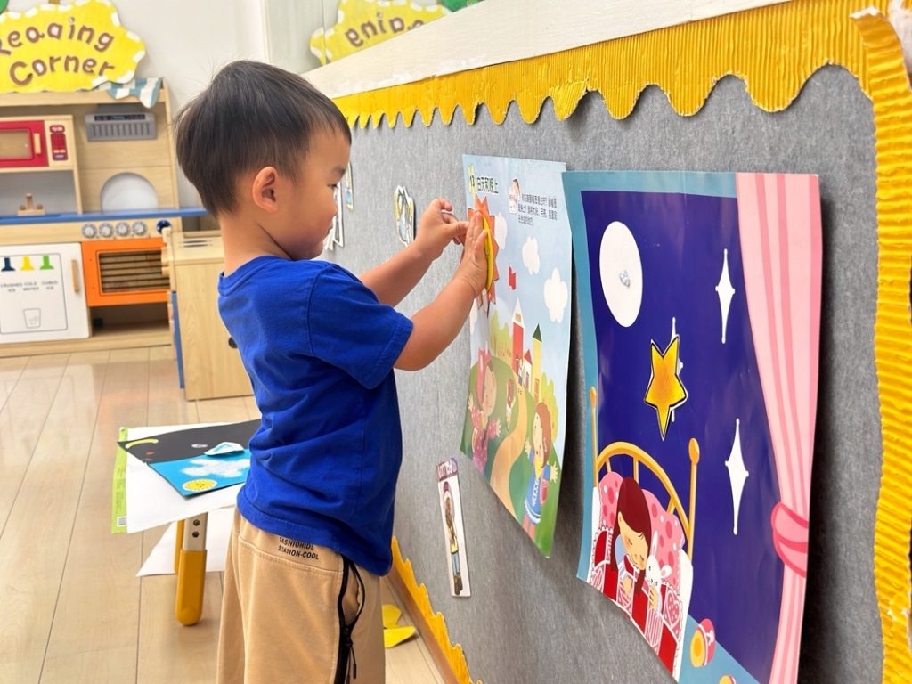 Hello Dear Parents! Today we talked about the marine life, specifically about Puffer fish 🐟 and showed them that puffer fish look cute but if bothered it can blow up like a balloon and can cause harm.We should appreciate and protect the nature without bothering it! Today we reviewed 3 of the most common and used letters of the alphabet m/t/c focusing on the letter sound and its vocabulary! For Chinese Literacy:白天和夜晚 感知白天和夜晚的不同。仔细看一看,画面中有什么?观察画面相同和不同的地方。宝宝结合已有的生活经验,说一说在白天和夜晚能看见什么。将太阳和月亮的贴纸分别贴到白天和夜晚画面中的相应地方。夜晚的时候,爸爸妈妈可以和宝宝一起到外面去看看天上的星星、月亮,感受夜晚的美景。 Everyone did amazing!!