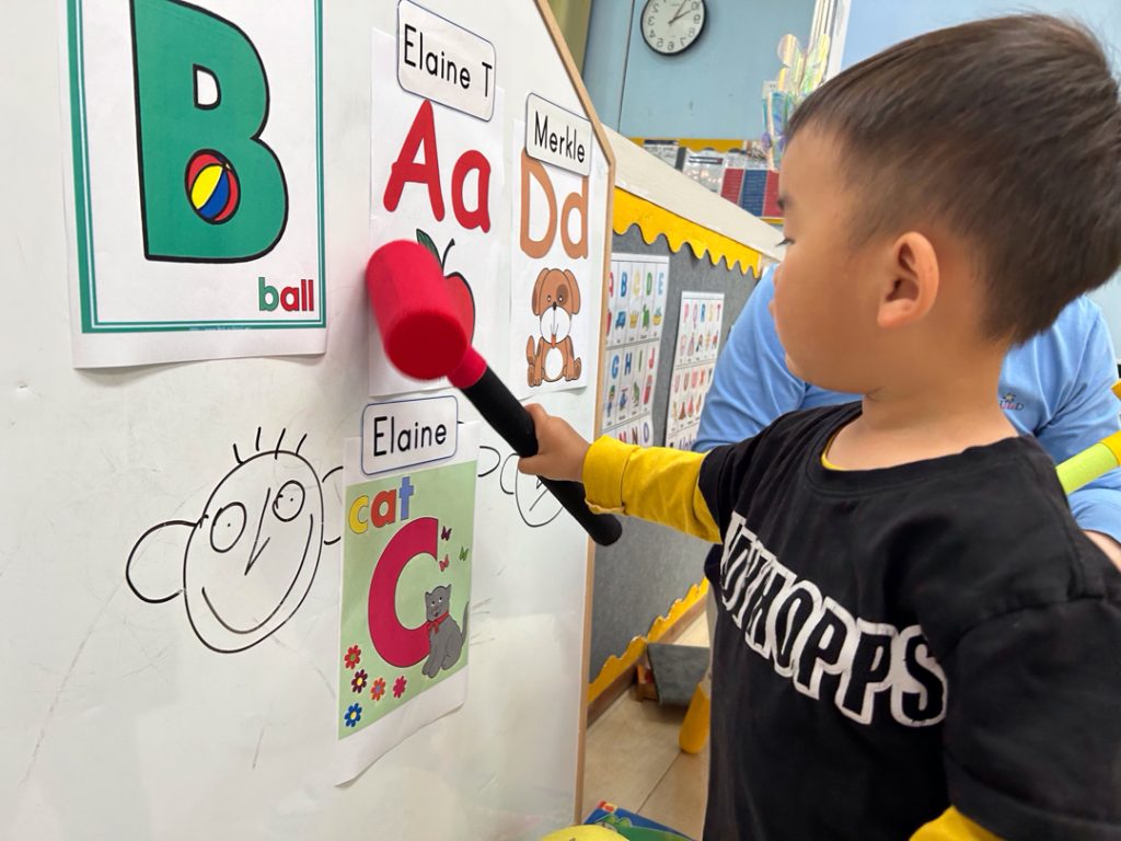 What we did today: 06/05/2024 Morning schedule: In the morning we had the morning circle time. Afterwards, they had an English class. Then they had an outdoor exploratory play and walk. Thereafter, they had a Chinese class and listened to a story. Song we sang: Hello, how are you, baby shark , Finger family Daily talk: How are you?: I’m happy,I’m sad,I’m angry (use your name and stick it next to the funny face) Review colours: red yellow orange blue purple Letters review: A,B,C,D Words: Apple,ball,cat,dog Art and craft: Find and colour letter Aa Hammer game: find letters and punch it Short story: Dinosaurs Galore Afternoon schedule: Story reading: That’s not my dog. That’s not my pony