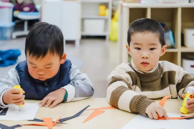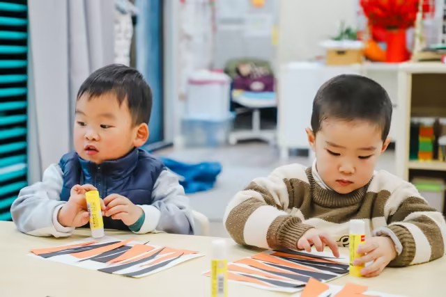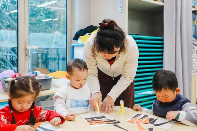 通过观察森林动物老虎的外型特征及皮毛颜色,用橙色和黑色的卡纸,进行手工制作——老虎🐯