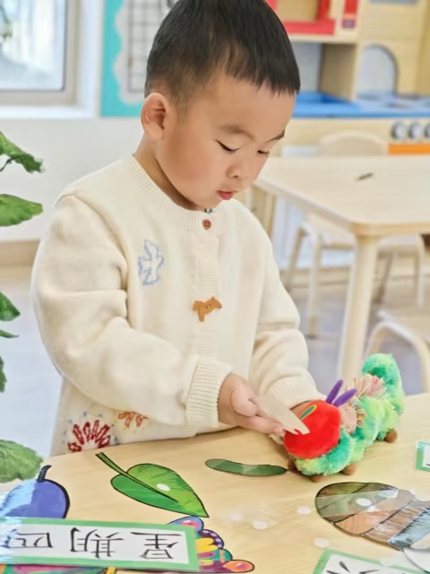 In Chinese class, the children continued to learn numeral recognition and number sequencing. They carried out a task in which they ordered numbers from 1 to 20 and back from 20 to 1 using stickers.