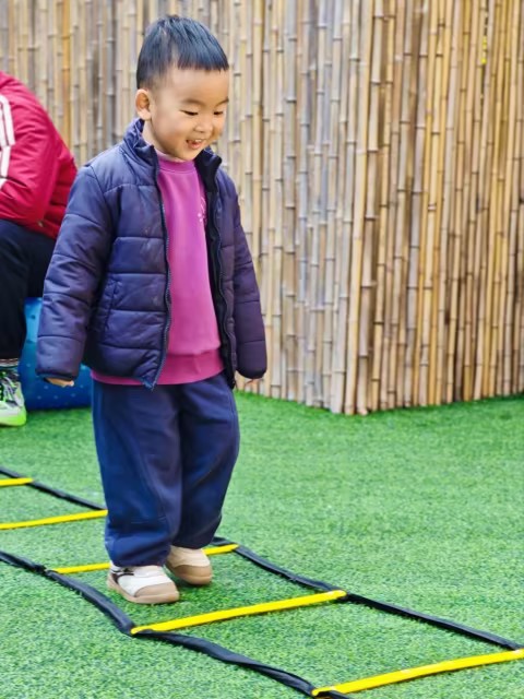 In PE class, the children began their assessment of flag football skills such as running, jumping, moving direction, throwing and catching.