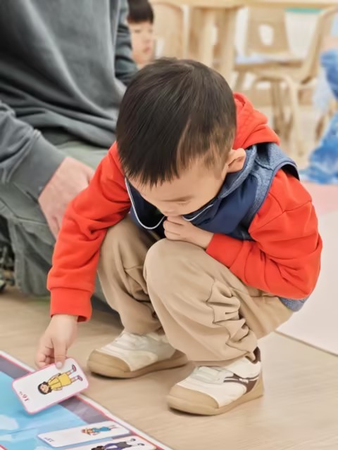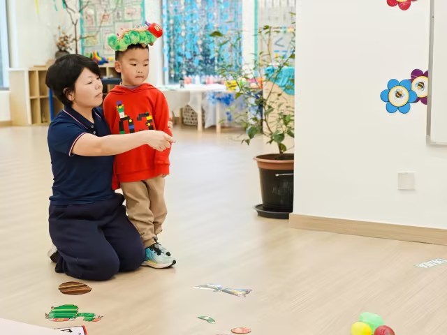 今天的中文课上,孩子们继续和好饿的毛毛虫做朋友。课程开始,一边回忆毛毛虫一周都吃了什么,一边把食物图片贴到对应的星期格子里。说到苹果、梨和草莓时,老师引导孩子们用“红红的”“圆圆的”“甜甜的”这样的词来描述食物,孩子们争先恐后地举手,有的说“紫紫的李子”,有的说“香香的草莓”,小脑袋里的词汇量还真不少。在接下来的“食物发布会”环节,老师出示了各种食物图片,孩子们学着用形容词给食物“化妆”——苹果变红了,橘子变酸甜了,连绘本里没出现的冰淇淋也被大家夸成了“凉凉的、甜甜的”。随后,大家用“如果我是毛毛虫,我想吃”的句式练习表达,有的孩子说“想吃脆脆的梨”,有的说“想吃软软的蛋糕”,还把食物贴在自己喜欢的星期格子里。最后是表演游戏时间,孩子们戴上头饰,一边模仿毛毛虫爬行,一边说着今天学到的句子,爬到食物跟前就啊呜一口,玩得不亦乐乎。这节课下来,孩子们不仅记住了故事顺序,还学会用好听的词来描述食物,语言的乐趣就在这吃吃喝喝的游戏中悄悄得到发展。