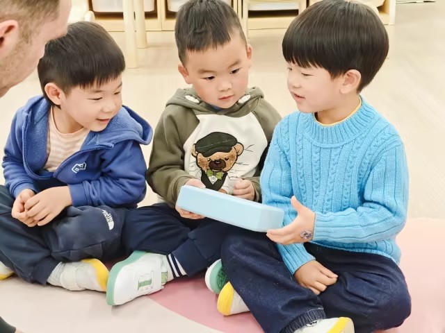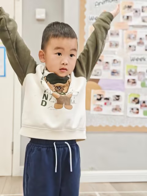 今天的中文课是一场热闹的海底探险!小朋友们跟着老师一起潜入海洋,认识了四位有趣的动物朋友。我们见到了拥有超能力的海星,孩子们不仅张开身体变成五角星,还用小手贴上吸盘贴纸,玩“吸住石头、松开石头”的游戏,最神奇的是大家一起大喊“再生”,把断掉的手臂变了出来。接着我们遇见了超级奶爸海马,孩子们模仿它卷卷的尾巴和站着游泳的姿势,看到老师扮演的海马爸爸从育儿袋里“生出”宝宝时,都惊讶得瞪大了眼睛。小丑鱼尼莫最受欢迎,大家一边在身上比划着橘白条纹,一边躲进“海葵”圈里,成功赶走了“鲨鱼“,。在认识了这些海洋朋友后,孩子们来到了手工桌旁,用彩色圆点贴纸为海星的“手臂”贴上一个个小吸盘。大家贴得可认真了,一边贴一边念叨着“吸盘吸住啦”,把自己心目中的海星打扮得漂漂亮亮。整节课下来,孩子们不仅通过身体游戏记住了海星再生、海马爸爸孵宝宝、小丑鱼与海葵共生这些特点,还亲手创作了自己的海洋伙伴,在认真中结束了今天的海底探险之旅。