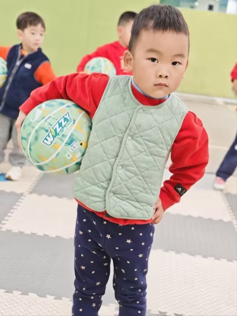 In PE class, the children continued with their basketball related theme and practiced jumping, rolling a ball, throwing and catching, strengthening ball-handling abilities and special awareness.