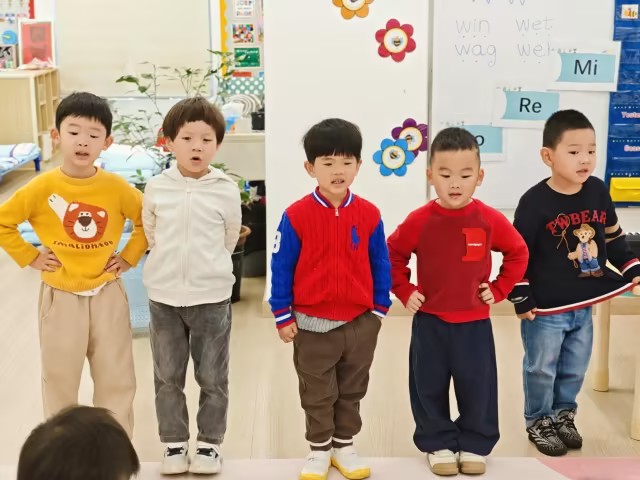 今天的音乐课围绕《Do Re Mi》展开,孩子们在轻松愉快的氛围中初步认识音阶、唱准音阶。课程以《身体音阶歌》热身开场,孩子们跟着歌词摸摸小脚、拍拍膝盖、叉腰、拍手,每做一个动作就唱出一个对应的音,在游戏中初步感受到了音高变化。随后,老师用“爬楼梯”的比喻,带着孩子们形象地理解了音阶的逐步升高。当老师弹响电子琴时,孩子们认真聆听,并尝试着唱准Do、Re、Mi三个音。在分组演唱环节,孩子们跟着琴声唱出“Do Re Mi”上行和“Mi Re Do”下行,就像在声音的楼梯上轻松地走上走下,在游戏中迈出了探索音阶的第一步。