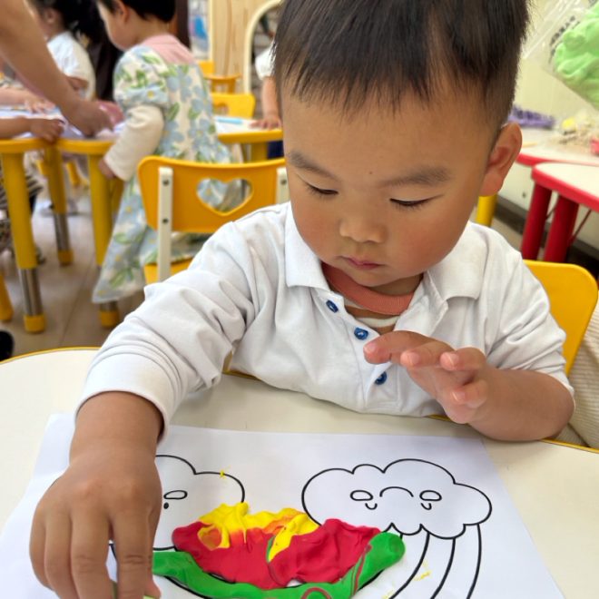 What we did today: 05/17/2024 Morning schedule: In the morning we had the morning circle time. Afterwards, they had an English class. Then they had an outdoor exploratory play and walk. Thereafter, they had a Chinese class and listened to a story. Song we sang: Hello, how are you, baby shark Daily talk: How are you?: I’m happy,I’m sad,I’m angry How is the weather today: it’s sunny it’s rainy it’s windy it’s snowy Extra vocabulary: rainbow Art and craft: Play dough rainbow Hammer game 中文:柳树姑娘(艺术) 活动主要让宝贝们认识柳树,感受柳树的特点。边欣赏音乐《柳树姑娘》,边尝试用手指去撕长长的柳条,并用胶棒粘贴在树干上,提高宝贝们的手指精细动作能力。 Afternoon schedule: Song: Baby shark Story:That’s not my dinosaur
