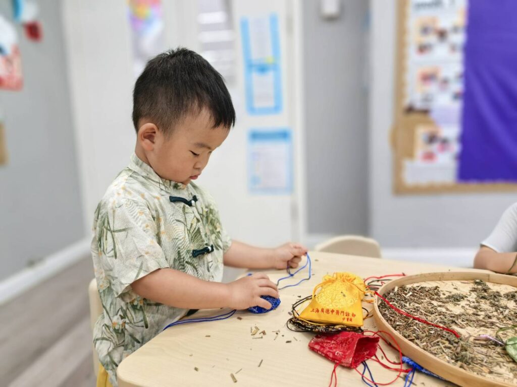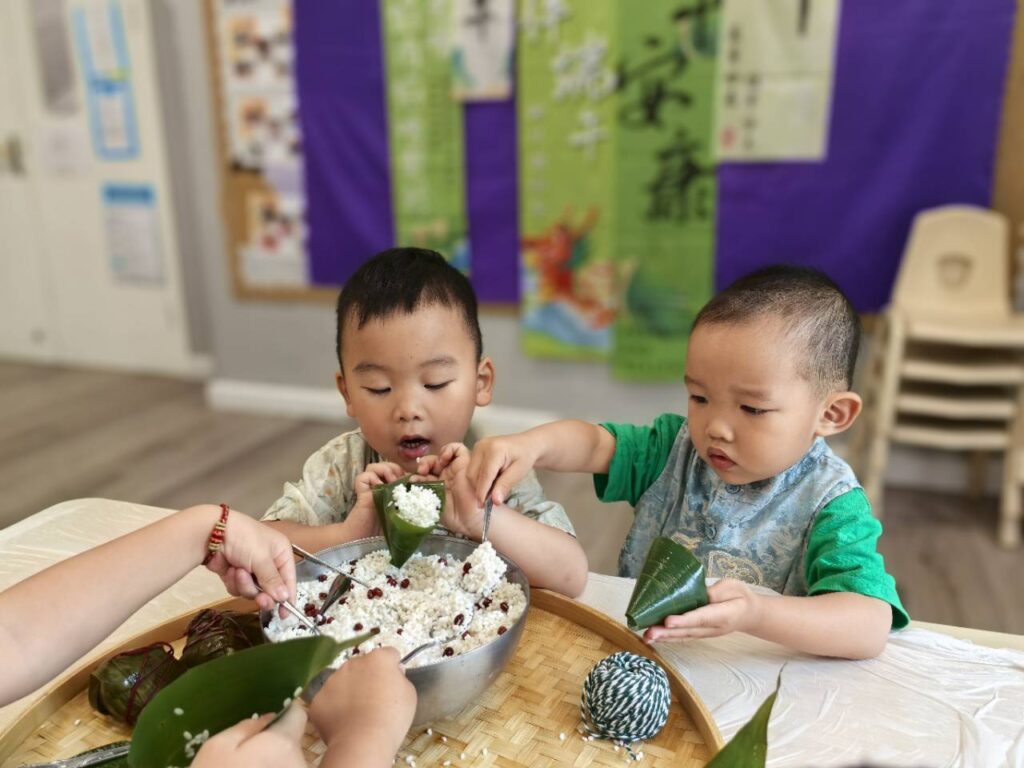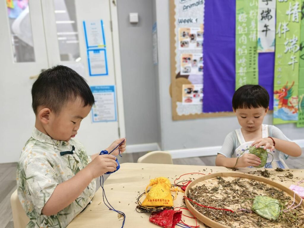 今天孩子们通过包粽子,做香囊等活动,体验了端午节的习俗,感受了节日的气氛。