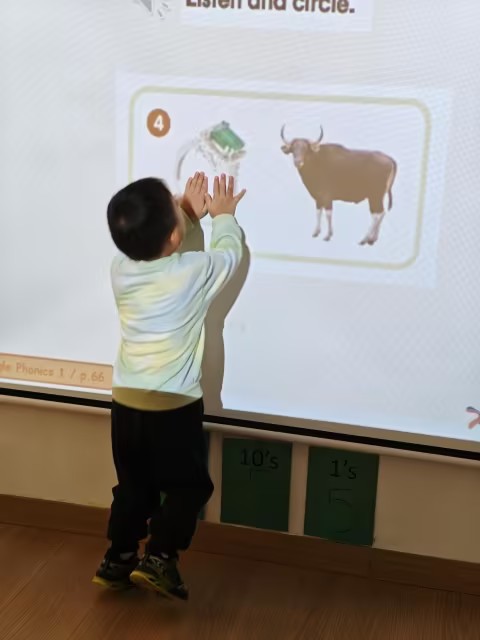 今天的英文数学课我们围绕图形分类展开,孩子们通过观察不同形状的边数、角数以及是否为圆形等特征,对图形进行了比较和归类,学习从相同点和不同点去分析图形,还尝试从颜色、大小、形状等多个维度去观察和描述物体的特征。在活动过程中,不仅锻炼了孩子们的观察和比较的能力,也感知到分类其实就藏在我们日常生活里。