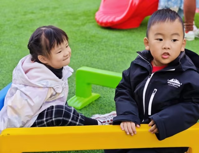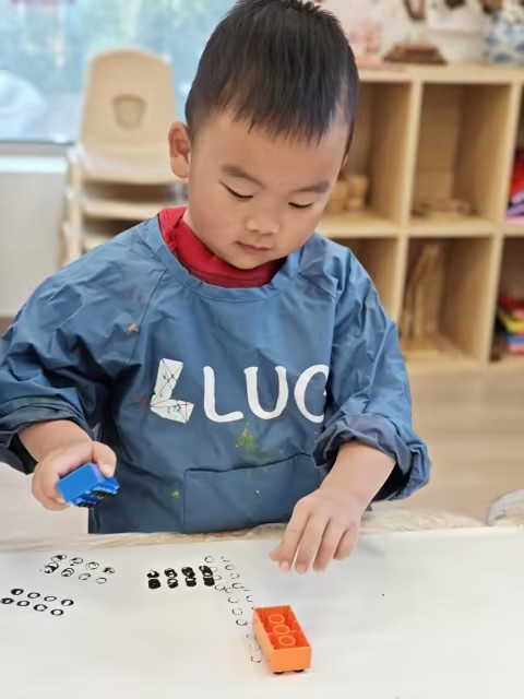In Chinese class, the children recreated the Bund’s historical skyline as a large group, using construction blocks.