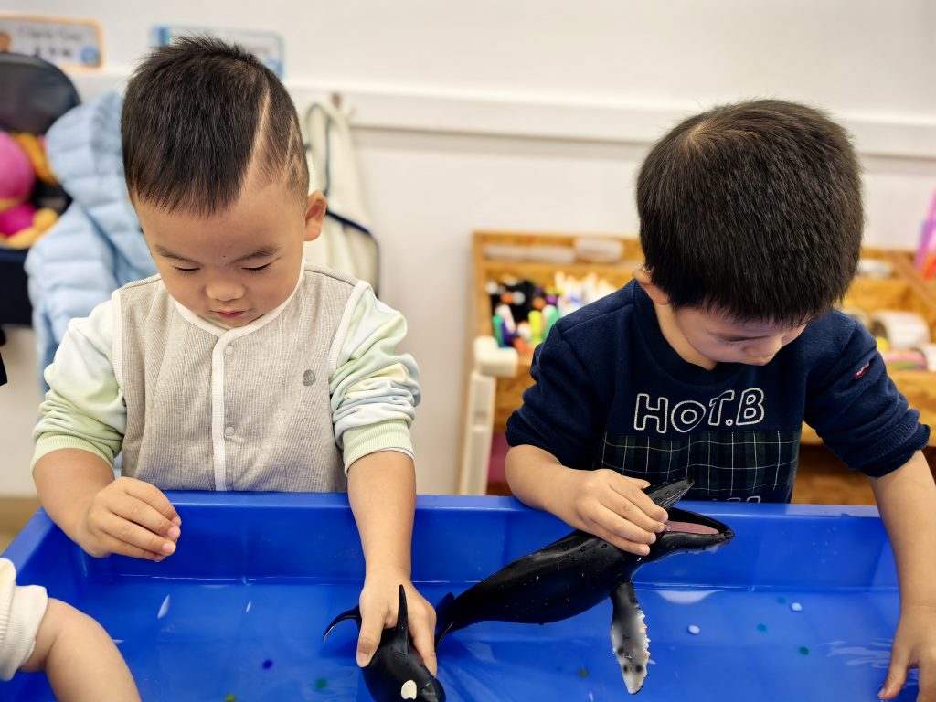 In STEM class, the children began to learn about the habitats of animals. This week they looked at ocean animals. The children observed live jelly fish and used models in water trays to explore ocean life.