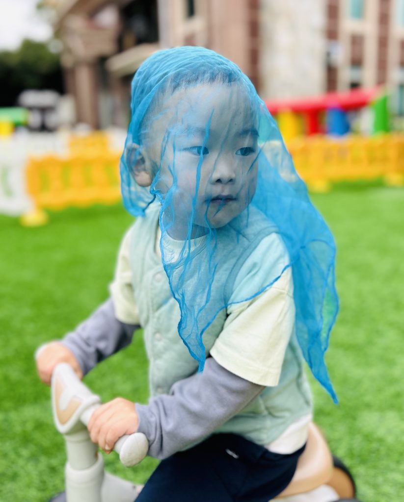 今天的艺术课上,我们开启了一段奇妙的色彩探索之旅!孩子们用白色卡纸做画布,先贴上蓝色、红色、黄色等不同形状的毛毡布,再轻轻盖上彩色透明的PVC塑料纸 — 当黄色塑料纸半叠在蓝色毛毡上时,孩子们惊喜地发现,重叠的部分“变”出了绿色!通过这样动手粘贴、层层叠加的方式,孩子们亲眼看到颜色和颜色做朋友,会手拉手变出新的色彩,既感受到了色彩混合的魔法,也体验到了动手创造的乐趣。