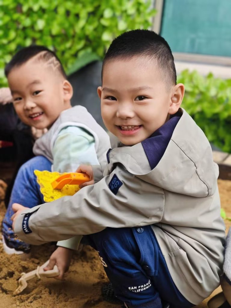 今日数学课上,孩子们通过趣味游戏继续巩固了“多、少、一样多”的数感概念。在比较两组物体数量时,他们学习并使用“more、less”等英文数学用语,并尝试用完整句子回答“Which group has more/less?”等问题。随后,每个孩子动手完成了一份纸上练习:纸上两个罐子底部分别标有“more”和“less”,孩子们需要根据提示在对应罐子中贴上圆点。作业考验他们对概念的理解,也提醒他们要仔细观察标签或老师的介绍——可别看到“less”反而贴得更多的贴纸哦!整节课在游戏中结合了语言表达与数学逻辑,孩子们也在动手动脑中加深了对数量比较的理解。