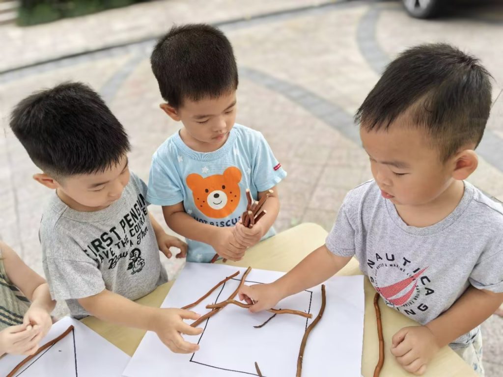 In STEM class, the children began to learn about simple 2D shapes. They went outside to gather some sticks. The sticks were brought back into the classroom to create 2D shapes with, such as squares and triangles.