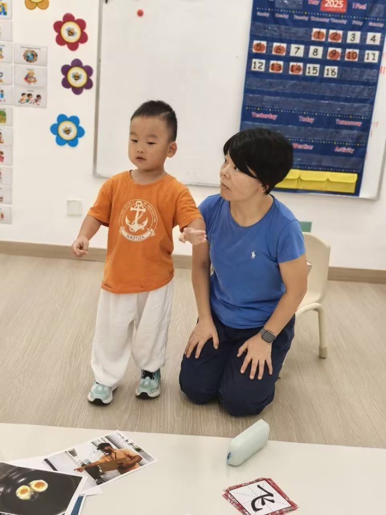 今日中文课上,孩子们在毛绒玩具“喵喵”的介绍下,对家中熟悉的声音表现出浓厚的兴趣。在“听一听,找一找”游戏环节,大家专注倾听门铃、切菜等声音,积极用拟声词和动作进行模仿,并准确找出对应的物品图片。孩子们还回忆了家里人说话的声音,并在模仿家人说话的过程中,感受在日常对话中蕴含的关爱与温暖。整个活动不仅锻炼了幼儿的倾听与辨别能力,更让他们在趣味游戏中建立起声音与家庭情感的美好连结。