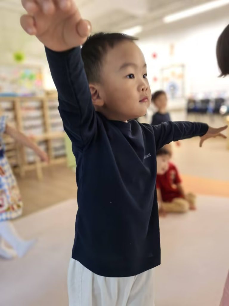 今日阴雨,我们虽无法在户外奔跑,但教室里充满了做瑜伽、健身活动时欢声笑语。孩子们首先认真地模仿着各种瑜伽动作,时而伸展如小树,时而蜷缩如小球;然后跟着卡通人物运动,频频过关斩将,赢取“奖章”。一个个小脸上都写满了专注与快乐。