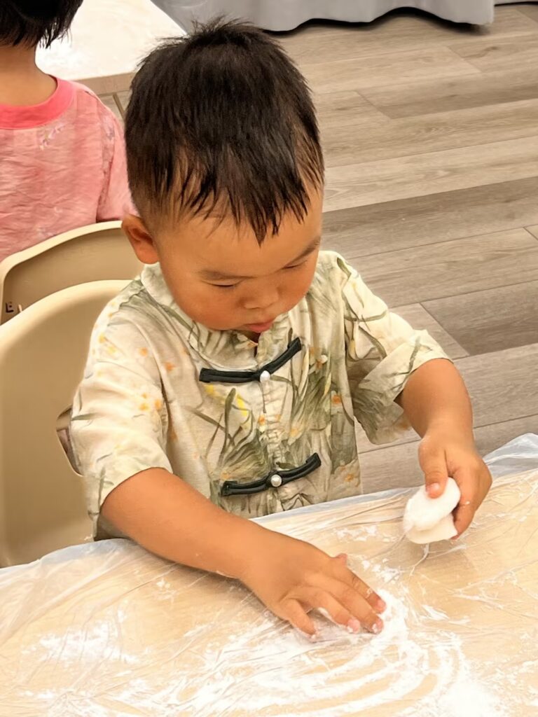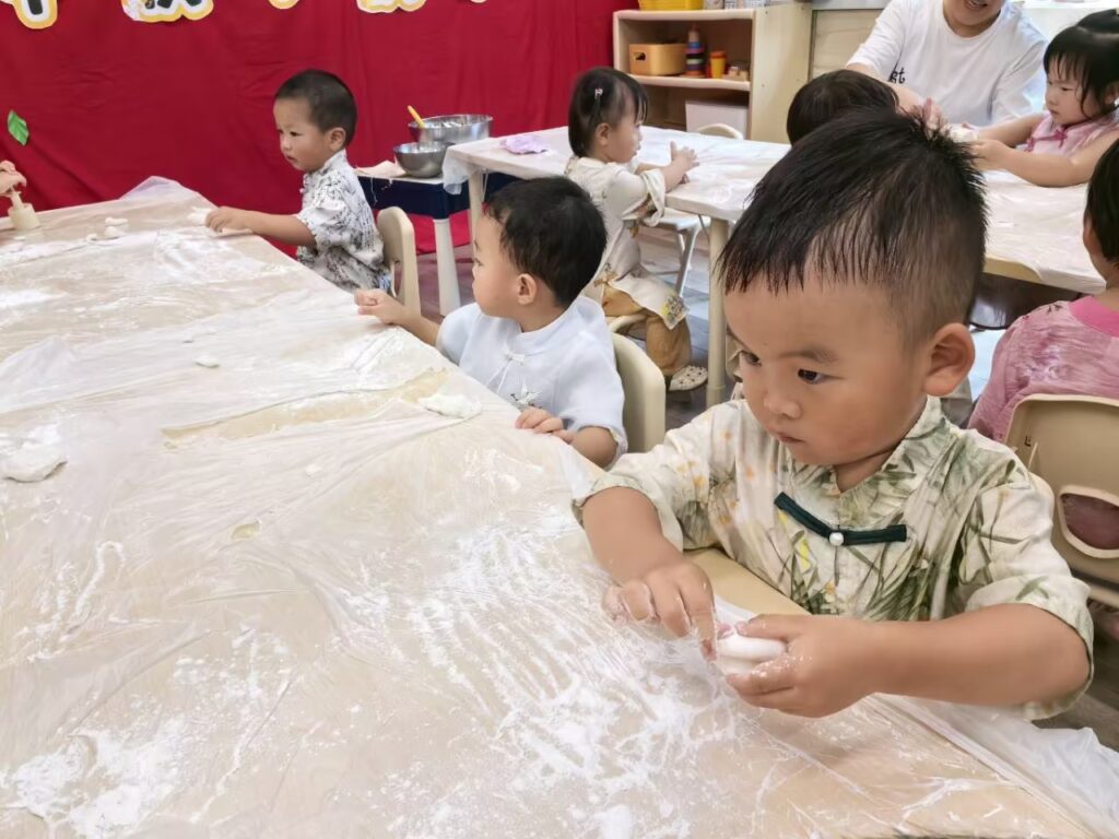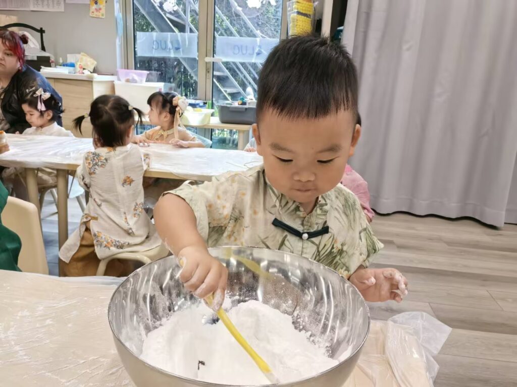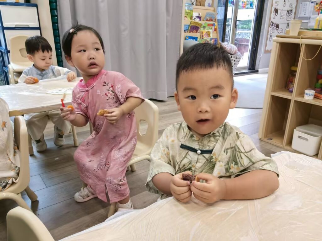 紧接着,孩子们期待的做冰皮月饼时间到了,老师先向孩子介绍了月饼的不同口味,和做月饼需要的材料,感谢Ethen爸爸妈妈赞助的月饼🥮,孩子们还品尝到了不同口味的月饼@Ethen Wang(F) @Ethen Wang(M) 孩子们用团,捏,搓,压等技能进行手工制作月饼🥮