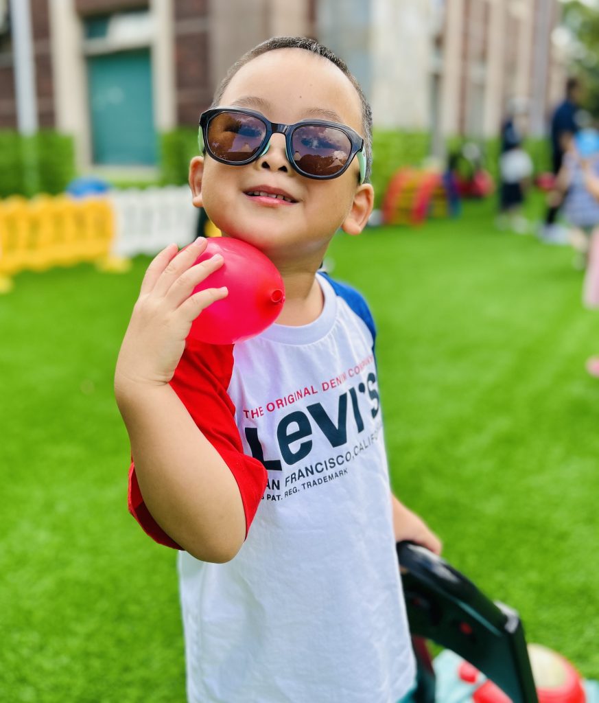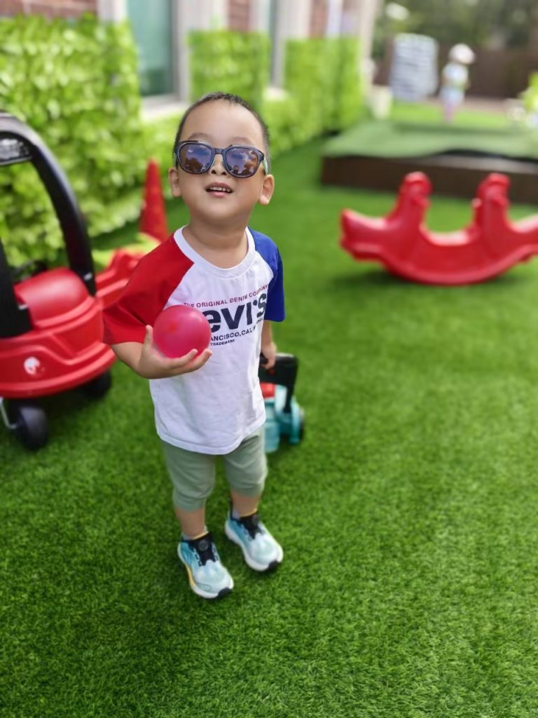 In Chinese class, the children learned to count to 15 with the aid of movements to music, counting beats on musical instruments and placing appropriate quantities of items onto a piece of paper according to vocal instructions.