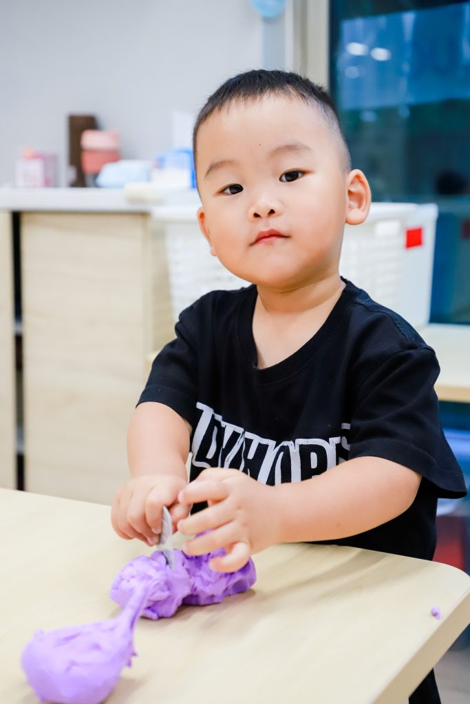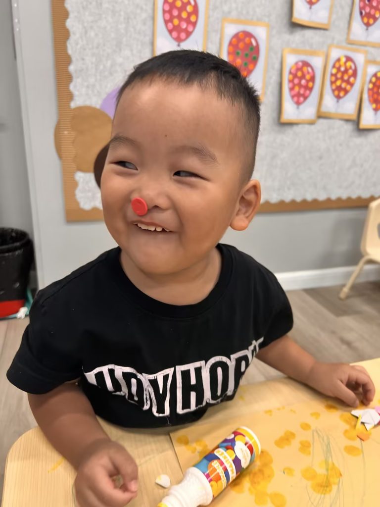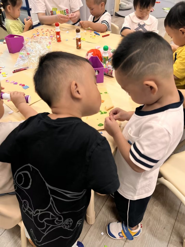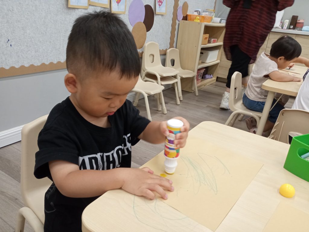 ❤ We played with lots of cool toys today, and made our first piece of artwork together~ we used different shapes, colors and materials to make a wonderful piece of art