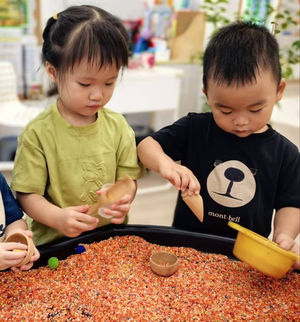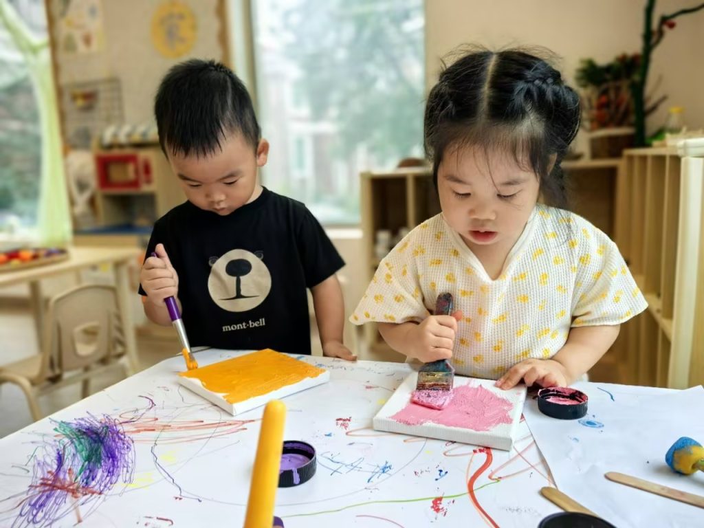 中文课上,老师在表演中与孩子们分享了绘本故事《我的门》。通过小猪为不同体型的动物朋友开设大小不同的门这一生动情节,孩子们在倾听和互动中,初步理解“我们”与“共享”。接着老师引导孩子联系实际,感受到班级中的玩具、工具都是“我们的”,而不只是“我的”,帮助他们在适应集体生活的过程中,逐步建立归属感和规则意识。孩子们都很投入,积极表达自己的想法以及如何使用教室里我们的东西。